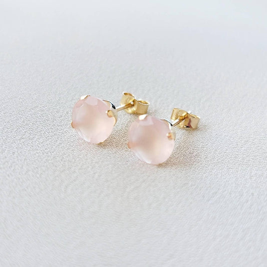 Pink Chalcedony Stud Earrings – 14K Gold, Gold Filled or Sterling Silver