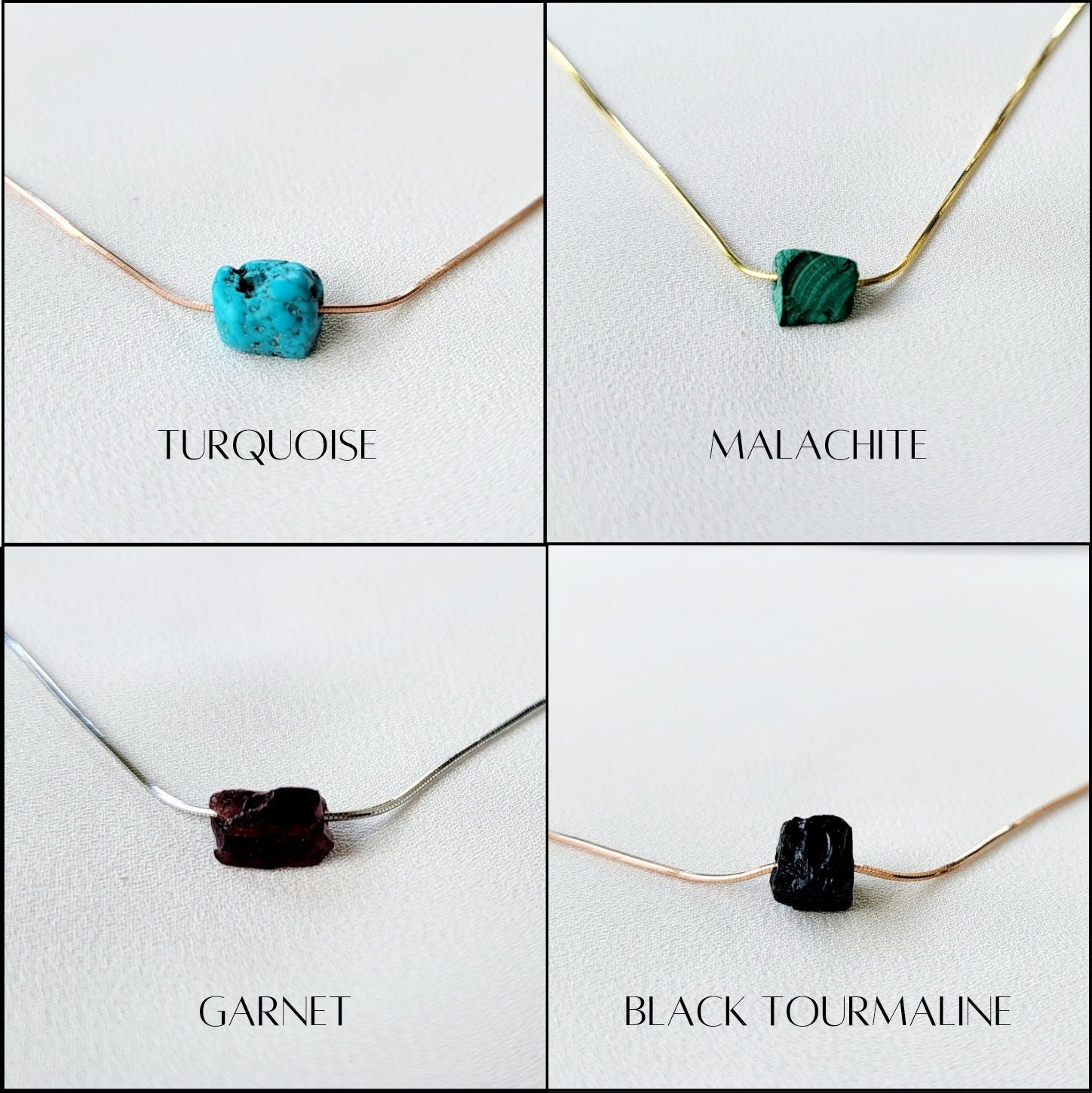 Rose Gold Silver Raw Gemstone Necklace - Adjustable Threader Choker - Lapis - Rose Quartz - Tanzanite - Amethyst - Garnet - Malachite -