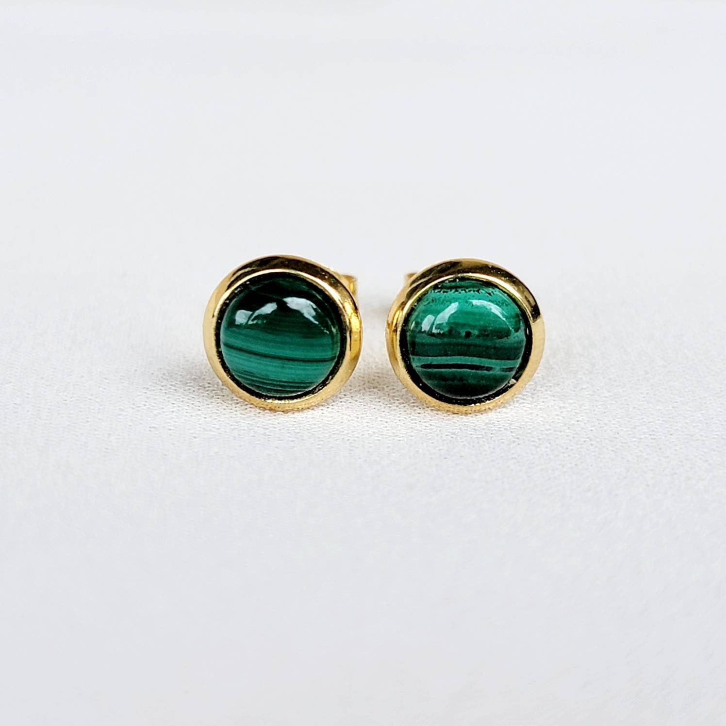 Green Malachite Stud Earrings - Gold Stainless Steel, 6mm