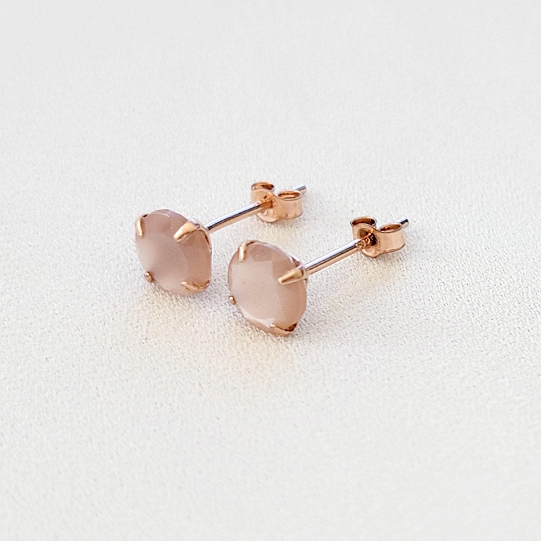 Peach Moonstone Stud Earrings – Sterling Silver or Gold Plated (3–6mm)