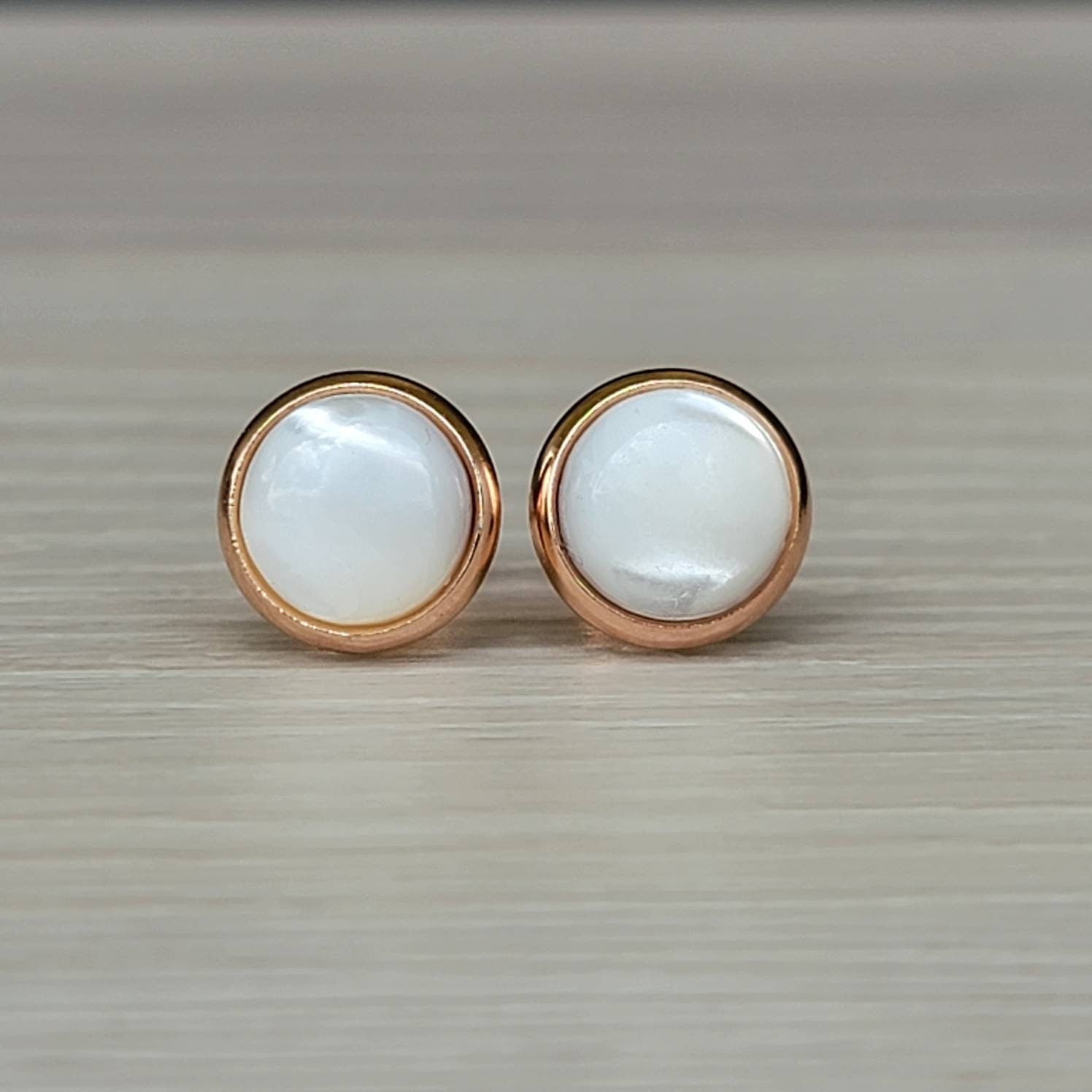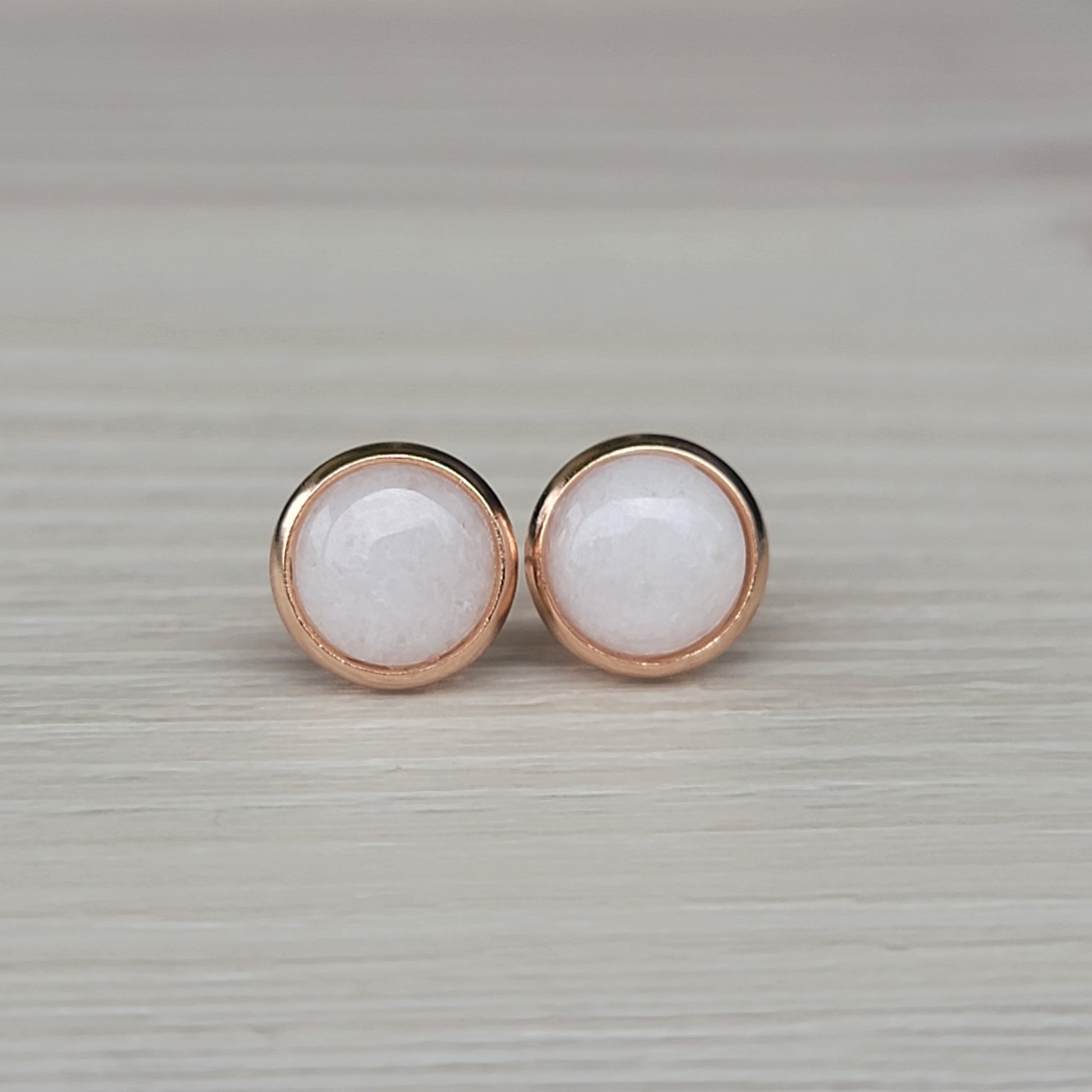 8MM Waterproof Stainless Steel Gemstone Earrings: Rose Quartz, Onyx, Jade